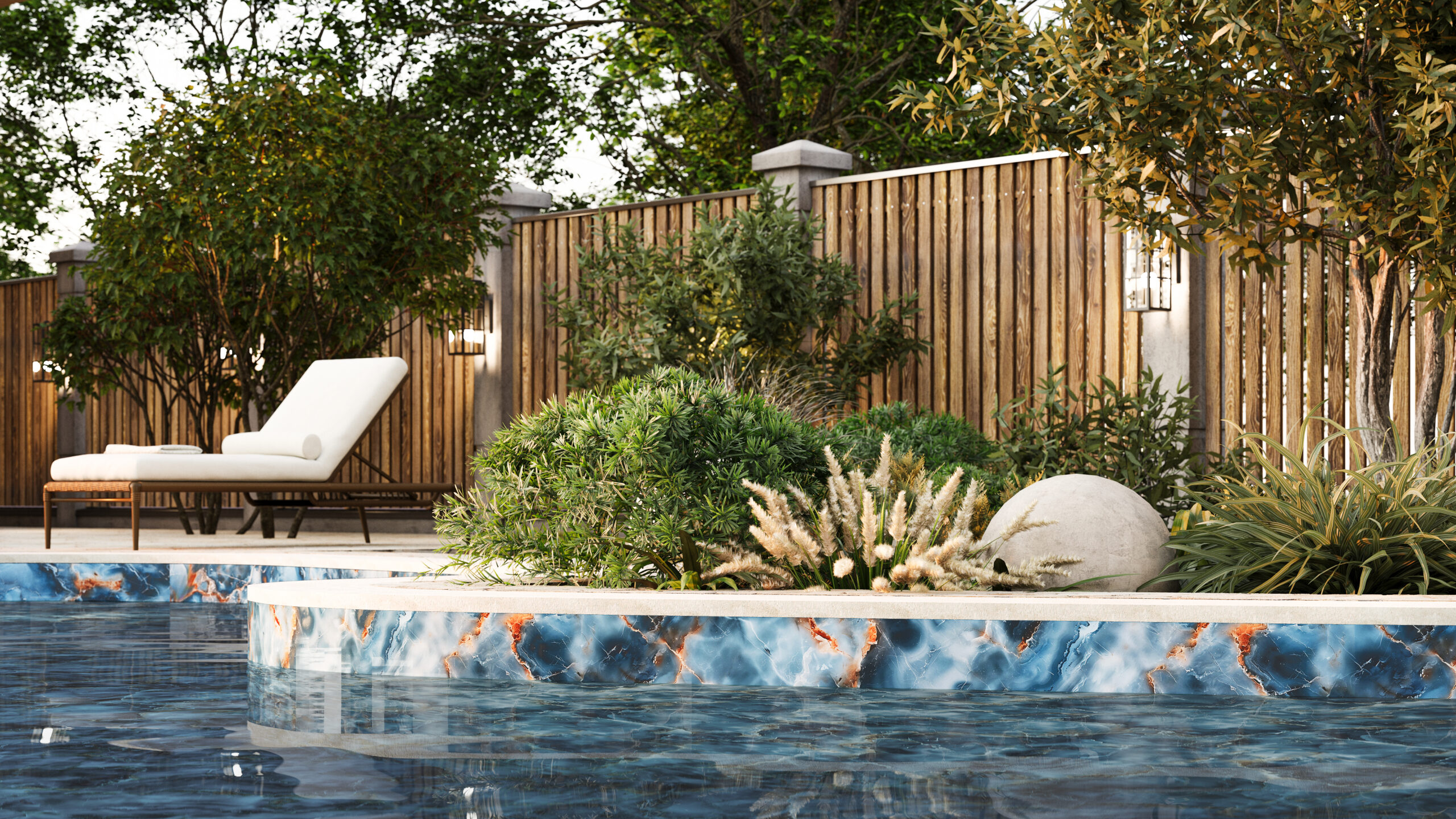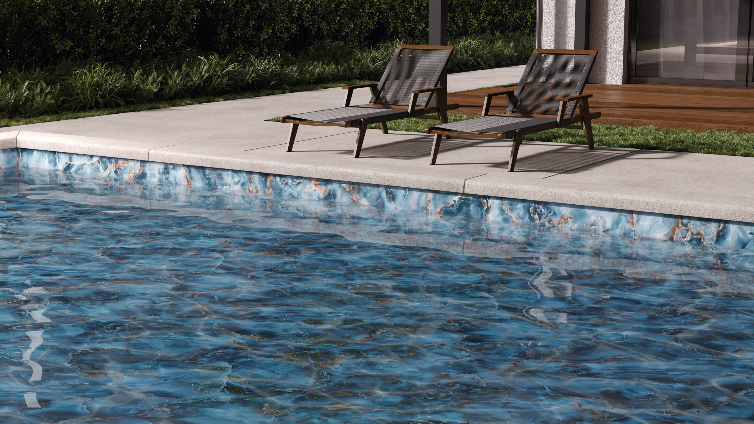 Dive into elegance with Blue Onyx, where rich, swirling blues and subtle mineral tones blend to create a liner that feels both natural and refined. This pattern evokes the depth and movement of polished onyx stone beneath crystal water, giving your pool a premium aesthetic that enhances the sparkle of sunlight and adds depth to shaded corners. Perfect for backyard escapes that balance classic beauty with bold color.