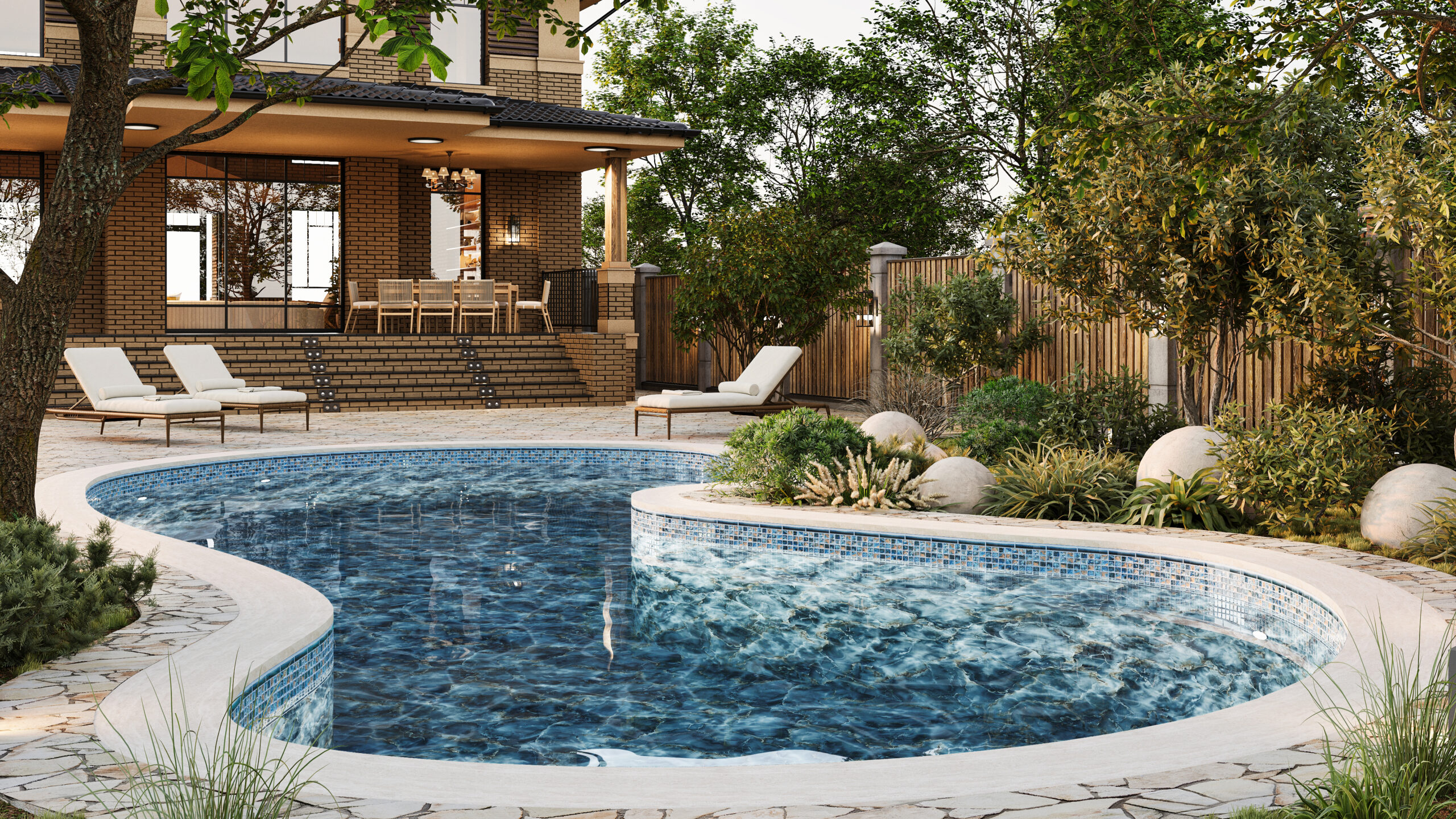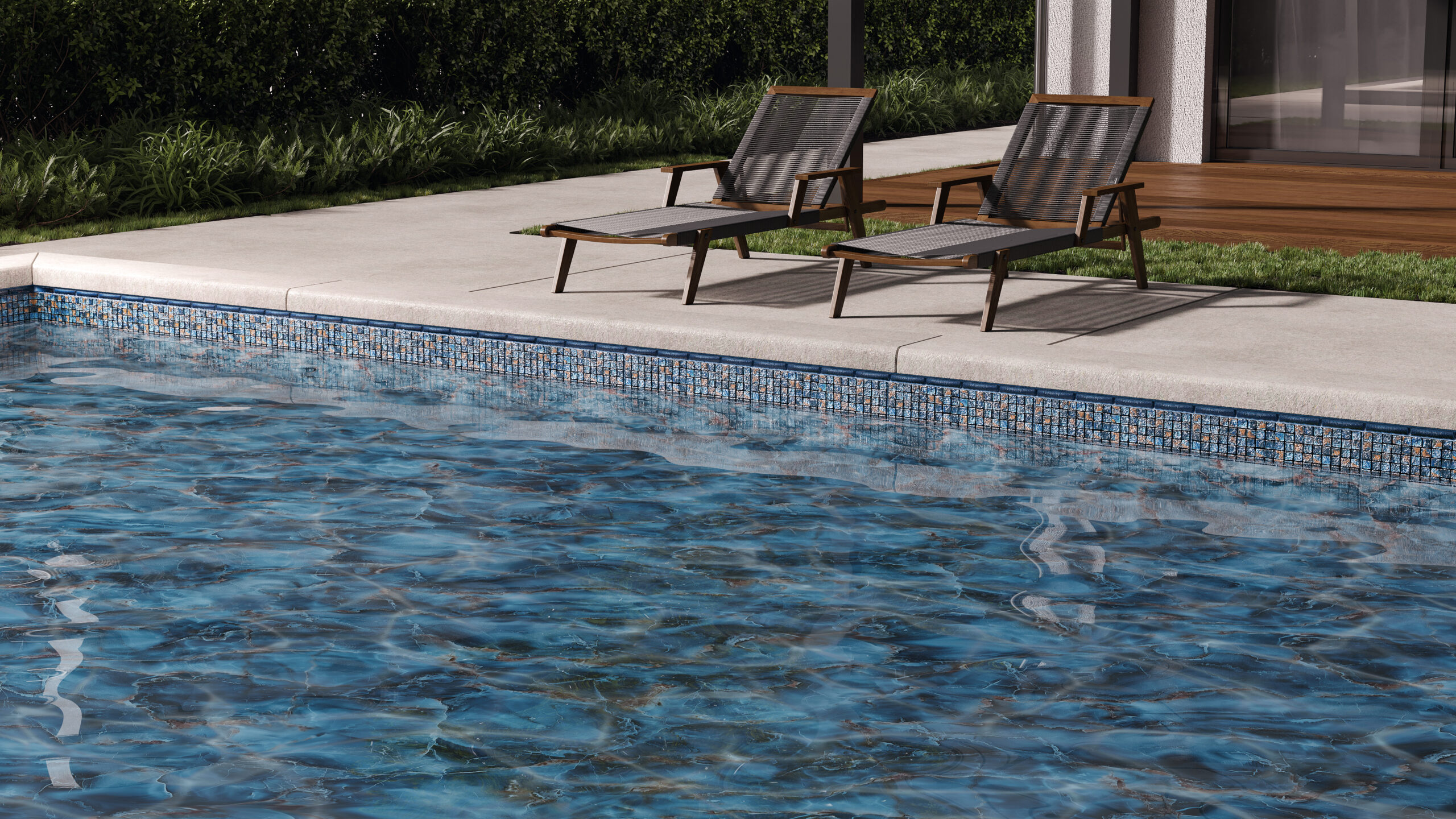 Capri brings a sophisticated mosaic of ocean-inspired hues to your poolscape. This design balances textured tile accents with natural stone influences, pairing deep marine blues with sandy bronze highlights for a look that’s both timeless and artistic. The interplay of shades and surface detail adds dimension and character — ideal for spaces where visual interest makes every swim feel like a retreat.